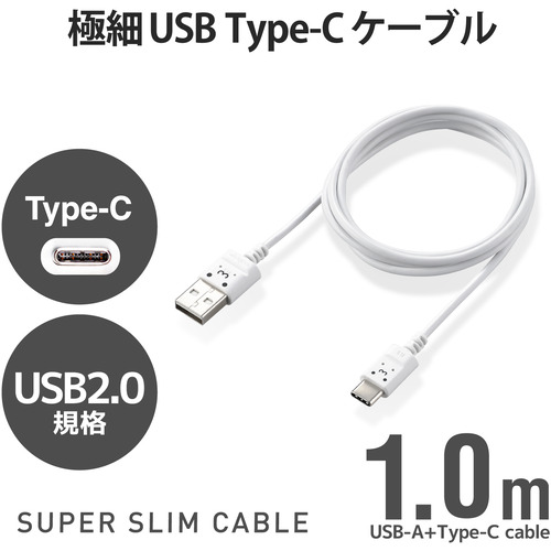 エレコム MPA-ACX10WF USB Type-Cケーブル スマホ用 USB(A-C) 極細 1.0m ホワイトフェイス