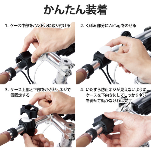 ●自転車のハンドル部分にしっかり固定できる自転車用AirTagホルダーです。