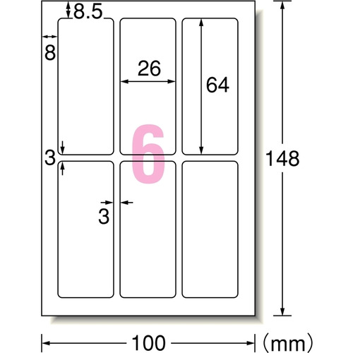 エーワン 26013 手書きもプリントもできるラベル ( はがきサイズ / 角型6面 / 26mm×64mm / 12シート )