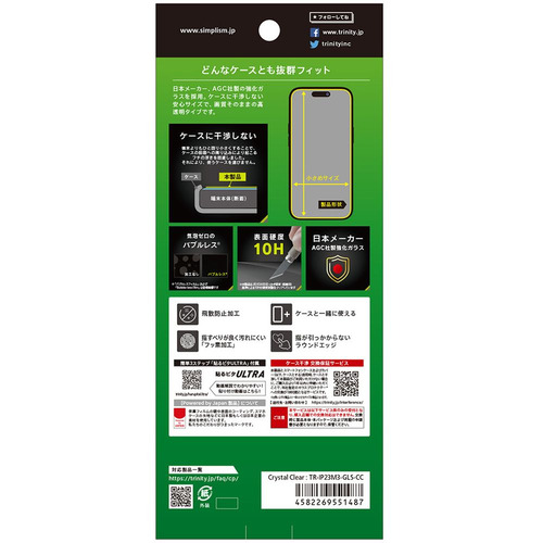 トリニティ TR-IP23M3-GLS-CC iPhone 15Pro/iPhone 14Pro 高透明 画面保護強化ガラス