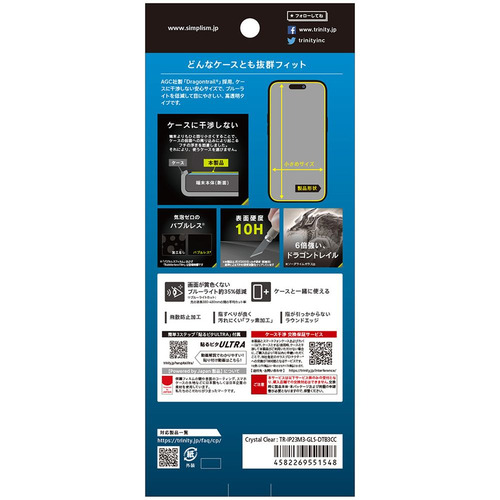 トリニティ TR-IP23M3-GLS-DTB3CC iPhone 15 Pro / iPhone 14 Pro ケースとの相性抜群 Dragontrail 黄色くないブルーライト低減 画面保護強化ガラス 光沢 なし