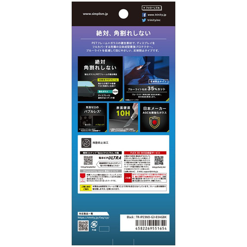 トリニティ TR-IP23M3-G3-B3AGBK iPhone 15 Pro / iPhone 14 Pro [FLEX 3D] 反射防止 黄色くないブルーライト低減 複合フレームガラス ブラック なし