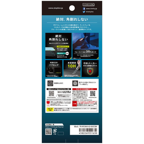 トリニティ TR-IP23M3-G3-B3CCBK iPhone 15 Pro / iPhone 14 Pro [FLEX 3D] 黄色くないブルーライト低減 複合フレームガラス ブラック なし