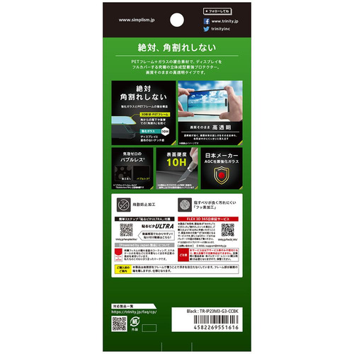 トリニティ TR-IP23M3-G3-CCBK iPhone 15Pro/iPhone 14Pro [FLEX 3D] 高透明 複合フレームガラス ブラック