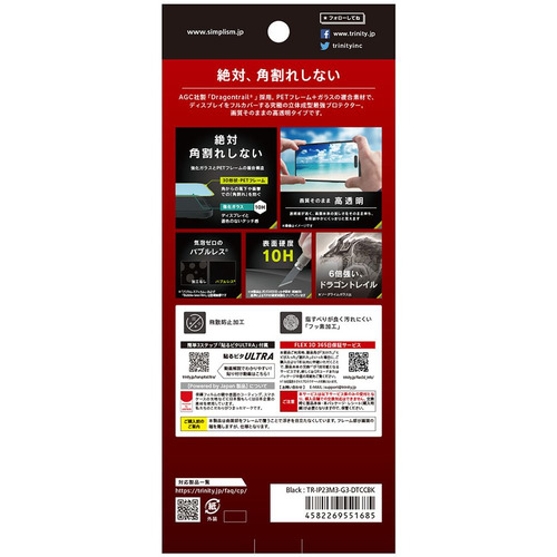 トリニティ TR-IP23M3-G3-DTCCBK iPhone 15 Pro / iPhone 14 Pro [FLEX 3D] Dragontrail 高透明 複合フレームガラス ブラック なし