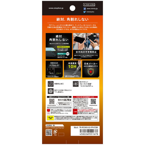トリニティ TR-IP23M3-G3-FPVCCBK iPhone 15Pro/iPhone 14Pro [FLEX 3D] 360° のぞき見防止 複合フレームガラス ブラック