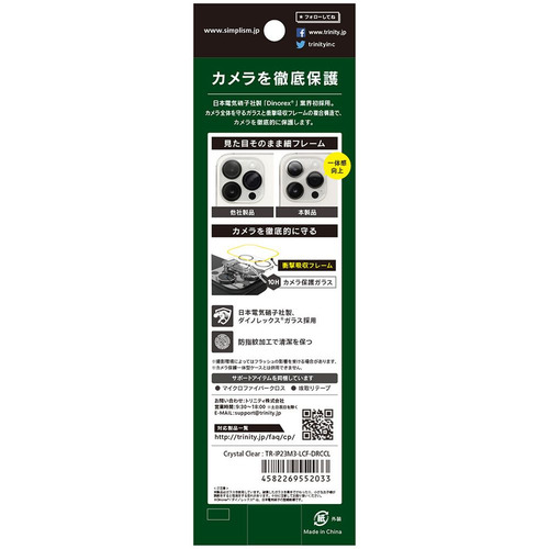 トリニティ TR-IP23M3-LCF-DRCCL iPhone 15/iPhone 15Plus [PicPro CUSHION] Dinorex クリア カメラレンズ保護ガラス