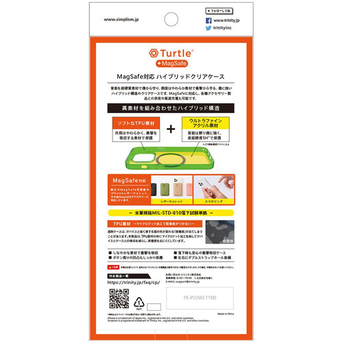トリニティ TR-IP23M3-TTMS-CLBK iPhone 15Pro [Turtle] MagSafe対応 ハイブリッドクリアケース ブラックリング ブラックリング