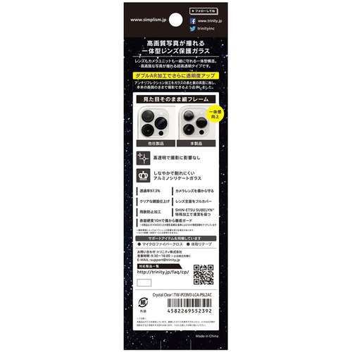 トリニティ TW-IP23M3-LCA-PSL2AC iPhone 15/iPhone 15Plus [ナノコート] ウルトラクリア カメラレンズ保護ガラス