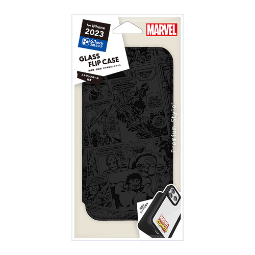 PGA PG-D23BGF20MVL iPhone15Pro ガラスフリップケース Premium Style マーベル PGD23BGF20MVL
