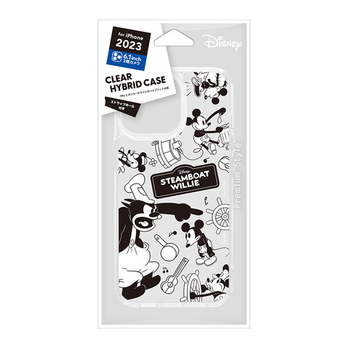 PGA PG-D23BPT08MKY iPhone15Pro クリアハイブリッドケース Premium Style 蒸気船ウィリー PGD23BPT08MKY