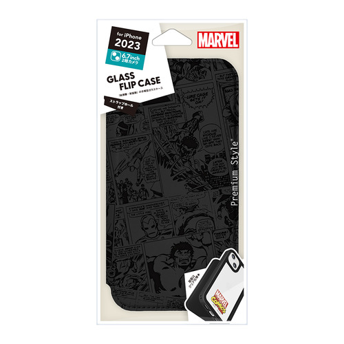 PGA PG-D23CGF20MVL iPhone15Plus ガラスフリップケース Premium Style マーベル PGD23CGF20MVL