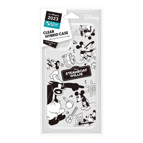 PGA PG-D23CPT02MKY iPhone15Plus クリアハイブリッドケース Premium Style 蒸気船ウィリー PGD23CPT02MKY