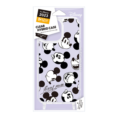 PGA PG-D23DPT06MKY iPhone15 Pro Max ショルダーストラップホール付クリアハイブリッドケース Premium Style ミッキーマウス PGD23DPT06MKY