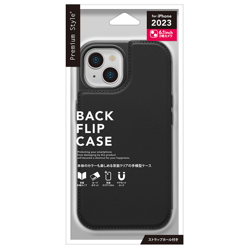 PGA PG-23ABF03BK iPhone15 バックフリップケース Premium Style ブラック PG23ABF03BK