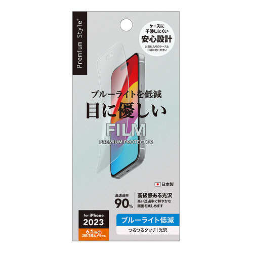 PGA PG-23ABL01 iPhone15 iPhone15 Pro 液晶保護フィルム Premium Style ブルーライト低減/光沢 PG23ABL01