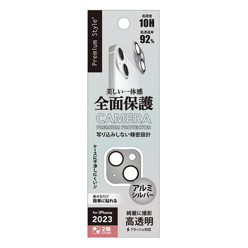 PGA PG-23ACLG10SV iPhone15 iPhone15 Plus カメラフルプロテクター Premium Style アルミ/シルバー PG23ACLG10SV