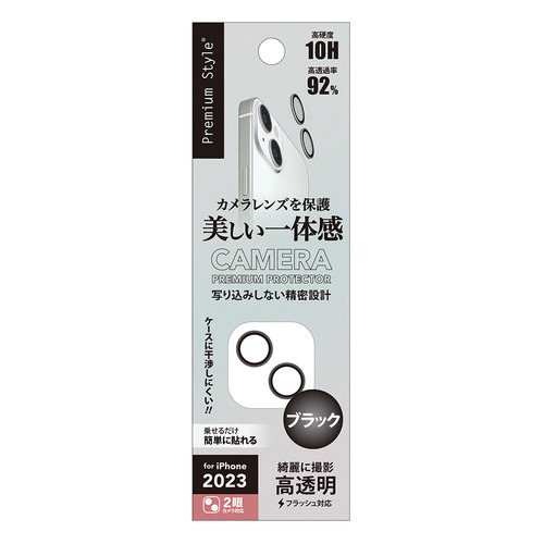 PGA PG-23ACLG23BK iPhone15 iPhone15Plus カメラレンズプロテクター Premium Style ブラック PG23ACLG23BK