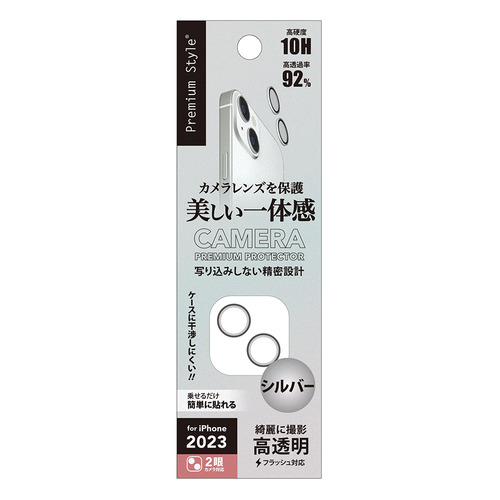 PGA PG-23ACLG24SV iPhone15 iPhone15 Plus カメラレンズプロテクター Premium Style シルバー PG23ACLG24SV