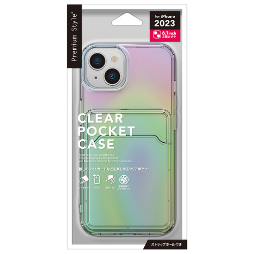 PGA PG-23ACTP02AR iPhone15 クリアポケットケース Premium Style オーロラ PG23ACTP02AR
