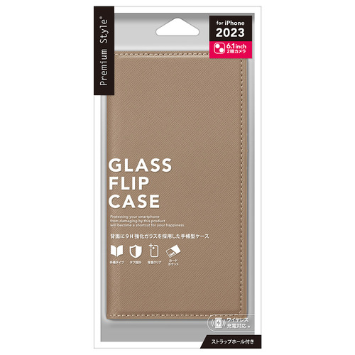 PGA PG-23AGF06BE iPhone15 ガラスフリップケース スクエアデザイン Premium Style ベージュ PG23AGF06BE
