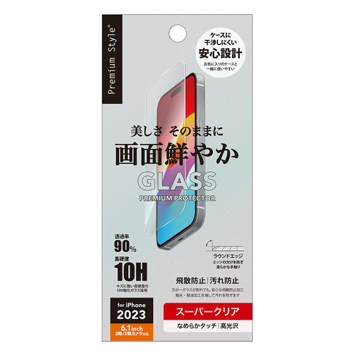 PGA PG-23AGL06CL iPhone15 iPhone15 Pro 液晶保護ガラス Premium Style スーパークリア PG23AGL06CL