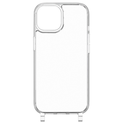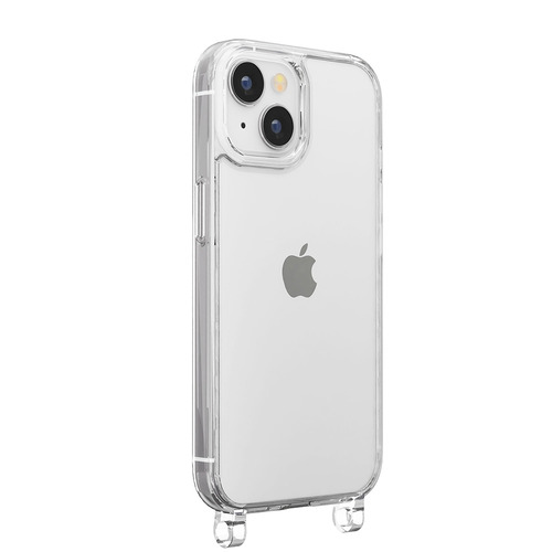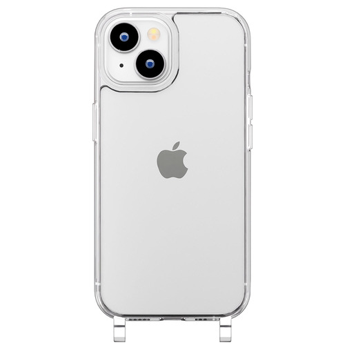 持ち運びに便利なショルダーストラップやハンドストラップを取り付けられるiPhone15 ショルダーストラップホール付クリアハイブリッドケースです。