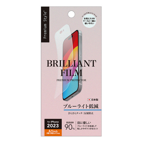 PGA PG-23AWBL01 iPhone15 iPhone15 Pro 液晶保護フィルム BRILLIANT Premium Style ブルーライト低減/アンチグレア PG23AWBL01