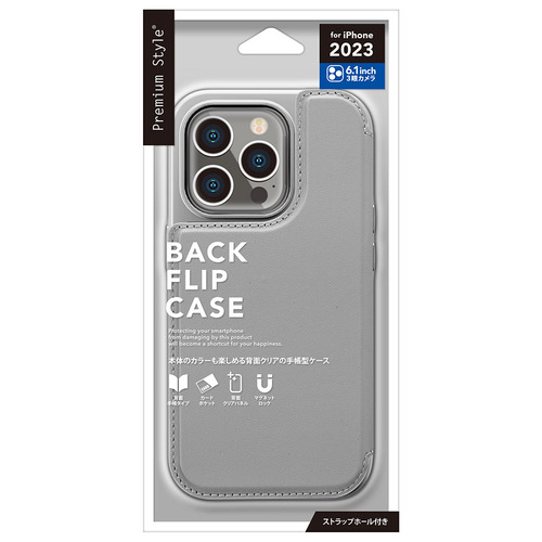 PGA PG-23BBF04GY iPhone15 Pro バックフリップケース Premium Style グレー PG23BBF04GY