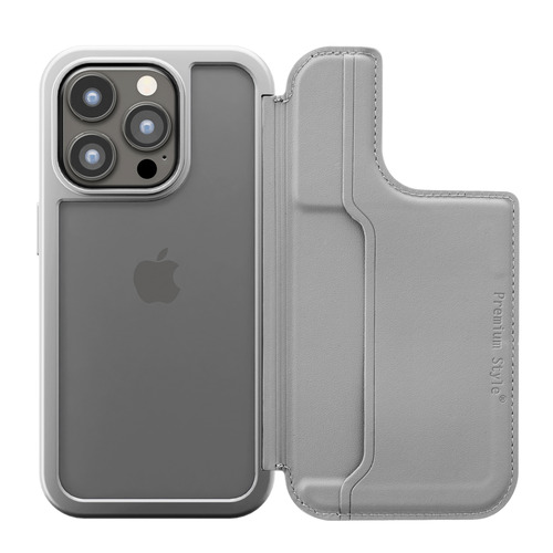 PGA PG-23BBF04GY iPhone15Pro バックフリップケース Premium Style グレー PG23BBF04GY