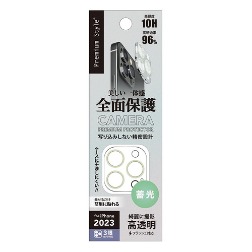 PGA PG-23BCLG05WH iPhone15Pro iPhone15ProMax カメラフルプロテクター Premium Style 蓄光 PG23BCLG05WH