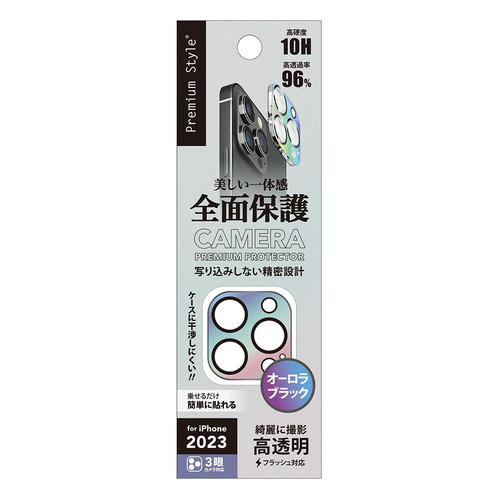 PGA PG-23BCLG06AR iPhone15 Pro iPhone15 Pro Max カメラフルプロテクター Premium Style オーロラ/ブラック PG23BCLG06AR