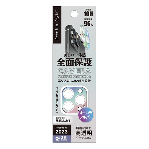 PGA PG-23BCLG07SV iPhone15Pro iPhone15ProMax カメラフルプロテクター Premium Style オーロラ/シルバー PG23BCLG07SV