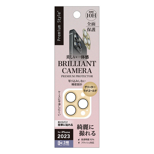 PGA PG-23BCLG16GD iPhone15Pro iPhone15ProMax カメラフルプロテクター Premium Style グリッター/ラメゴールド PG23BCLG16GD