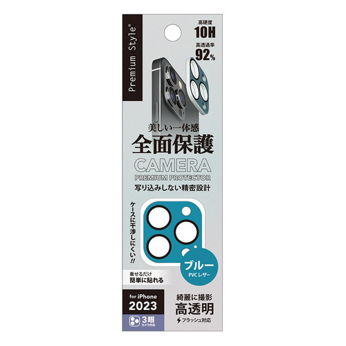 PGA PG-23BCLG19BL iPhone15 Pro iPhone15 Pro Max カメラフルプロテクター Premium Style PVCレザー/ブルー PG23BCLG19BL