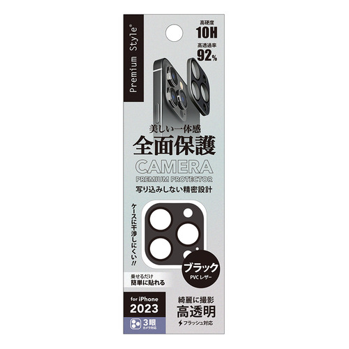 PGA PG-23BCLG20BK iPhone15 Pro iPhone15 Pro Max カメラフルプロテクター Premium Style PVCレザー/ブラック PG23BCLG20BK