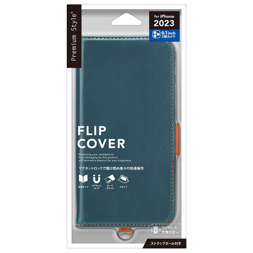 PGA PG-23BFP01BL iPhone15Pro フリップカバー Premium Style ブルー PG23BFP01BL