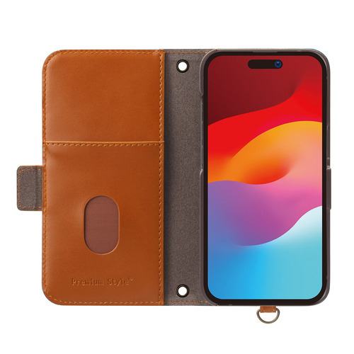 風合いの良い上質なPUレザー素材を使用したiPhone15 Pro フリップカバーです。