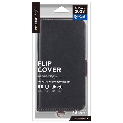 PGA PG-23BFP02BK iPhone15Pro フリップカバー Premium Style ブラック PG23BFP02BK