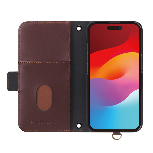 風合いの良い上質なPUレザー素材を使用したiPhone15 Pro フリップカバーです。