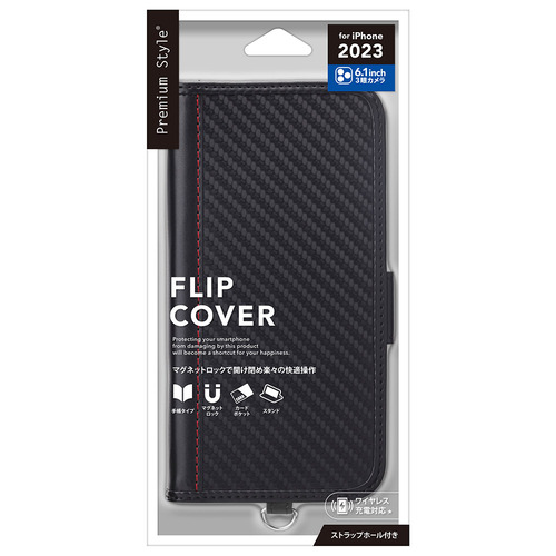 PGA PG-23BFP04BK iPhone15Pro フリップカバー Premium Style カーボン調ブラック PG23BFP04BK