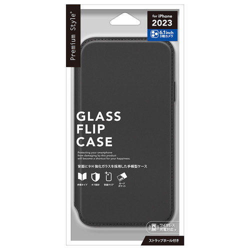 PGA PG-23BGF01BK iPhone15Pro ガラスフリップケース Premium Style ブラック PG23BGF01BK