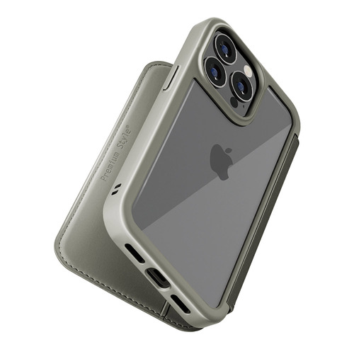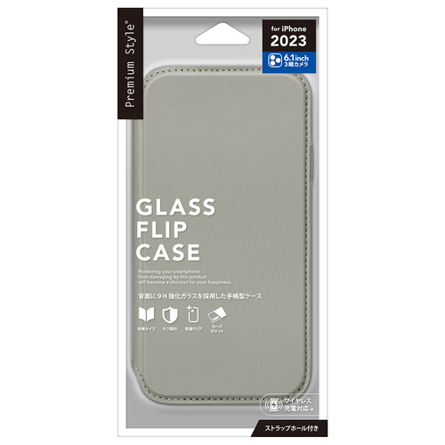PGA PG-23BGF04GY iPhone15Pro ガラスフリップケース Premium Style グレー PG23BGF04GY