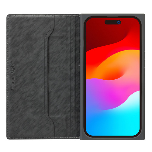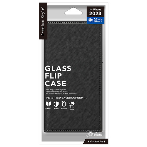 PGA PG-23BGF05BK iPhone15Pro ガラスフリップケース スクエアデザイン Premium Style ブラック PG23BGF05BK