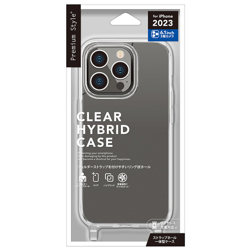 PGA PG-23BPT06CL iPhone15Pro ショルダーストラップホール付クリアハイブリッドケース Premium Style クリア PG23BPT06CL