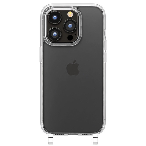 持ち運びに便利なショルダーストラップやハンドストラップを取り付けられるiPhone15 Pro ショルダーストラップホール付クリアハイブリッドケースです。