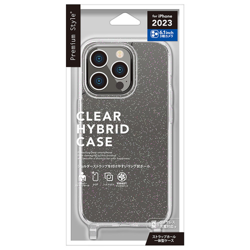PGA PG-23BPT08LM iPhone15Pro ショルダーストラップホール付クリアハイブリッドケース Premium Style ラメ PG23BPT08LM