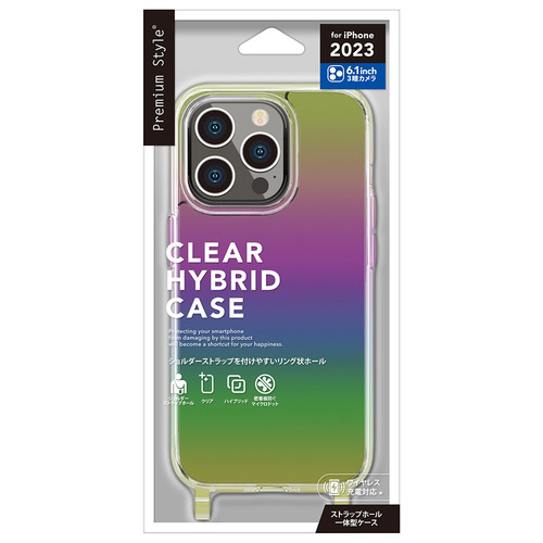 PGA PG-23BPT09AR iPhone15 Pro ショルダーストラップホール付クリアハイブリッドケース Premium Style オーロラ PG23BPT09AR