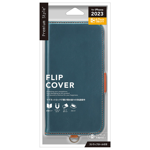PGA PG-23DFP01BL iPhone15ProMax フリップカバー Premium Style ブルー PG23DFP01BL