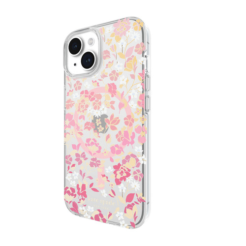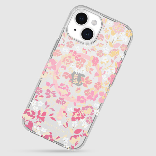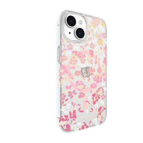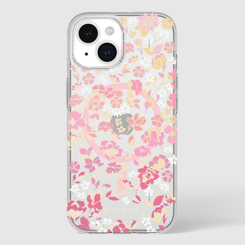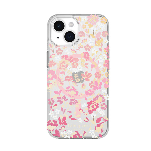 kate spade new york Protective Hardshell Case for MagSafe for iPhone 15 [ Flowerbed Pink Ombre/White/Rose/Pink/Multi/Gold Foil Logo ] KS052444 クリア